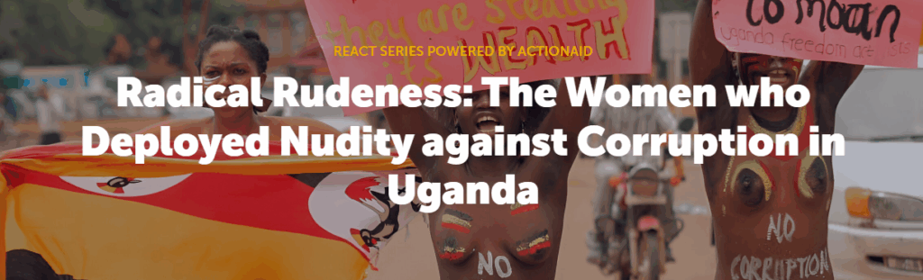 Kemitooma K.Nyina’Nkyenzibo writes: “The Ugandan state branded it a ‘common nuisance,’ but this nude protest, echoing the 1929 Nigerian Women’s War, wielded cultural defiance to expose forty years of authoritarianism under Yoweri Museveni. It was the language spoken by tired citizens. The language of the unheard. It was a radical act by three young women, slapping decades of injustice and shame onto the walls of the Ugandan parliament. It was a cursing ceremony to say, enough is enough. […]”