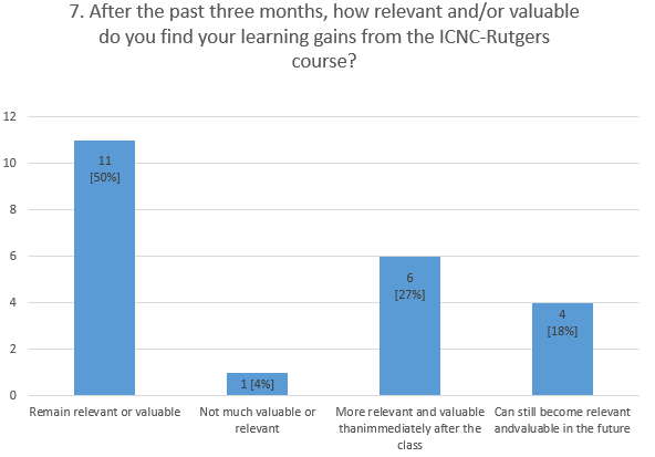 - After the past three months, how relevant and/or valuable do you find your learning gains from the ICNC-Rutgers course?