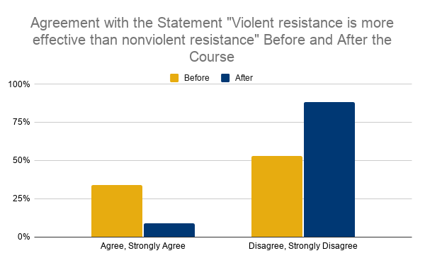 Agreement with the Statement _Violent resistance is more effective than nonviolent resistance_ Before and After the Course October 9, 2020 by Bruce Pearson